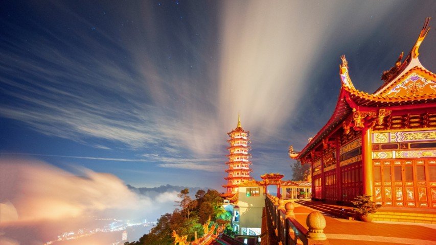 Cross to Penang for the grand sweep of Kek Lok Si, panoramic views from Penang Hill, and a wander through UNESCO-listed George Town—street art, colonial charm and hidden bars after dark.