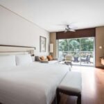 The hotel boasts 792 rooms and suites, divided into three distinct wings: Tower Wing, Garden Wing, and Valley Wing, each offering unique features and views. Decorated in a contemporary Asian style, the rooms are equipped with the latest technology and offer views of the city or landscaped gardens.