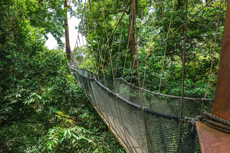 - Canopy walk high above the jungle floor